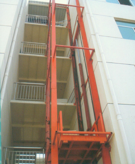 • 液壓式升降貨梯是在兩層之間運輸貨物的一種設備,主要由兩列立柱,臺面和液壓驅動部件等部分組成。載重可以從200kg到2000kg,臺面可以做到3米×2米,高度可以做到6米,上升速度為3.5米/分鐘。升降平臺的上升和下降是通過安裝在導軌里面的液壓油缸來實現的。液壓油缸是通過安裝在地面旁邊的液壓泵站提供動力來驅動的。一般標準的電源為三相380V,單相為220V也可。控制電壓為24V。在每一層都安裝有控制盒及急停按鈕。超行程開關安裝在頂部,防止設備超過設定高度運行。防爆閥在油缸底部,防止油管爆裂,平臺突然下降。如果載重超過額定載重的120%,平臺將不會起升。每一層都安裝有和設備互鎖的門,只有當平臺在那一層,那層的門才能開啟,否則門是打不開的。如果有一扇門沒有關好,設備是不會動作的。這樣可以保障人員貨物的安全。